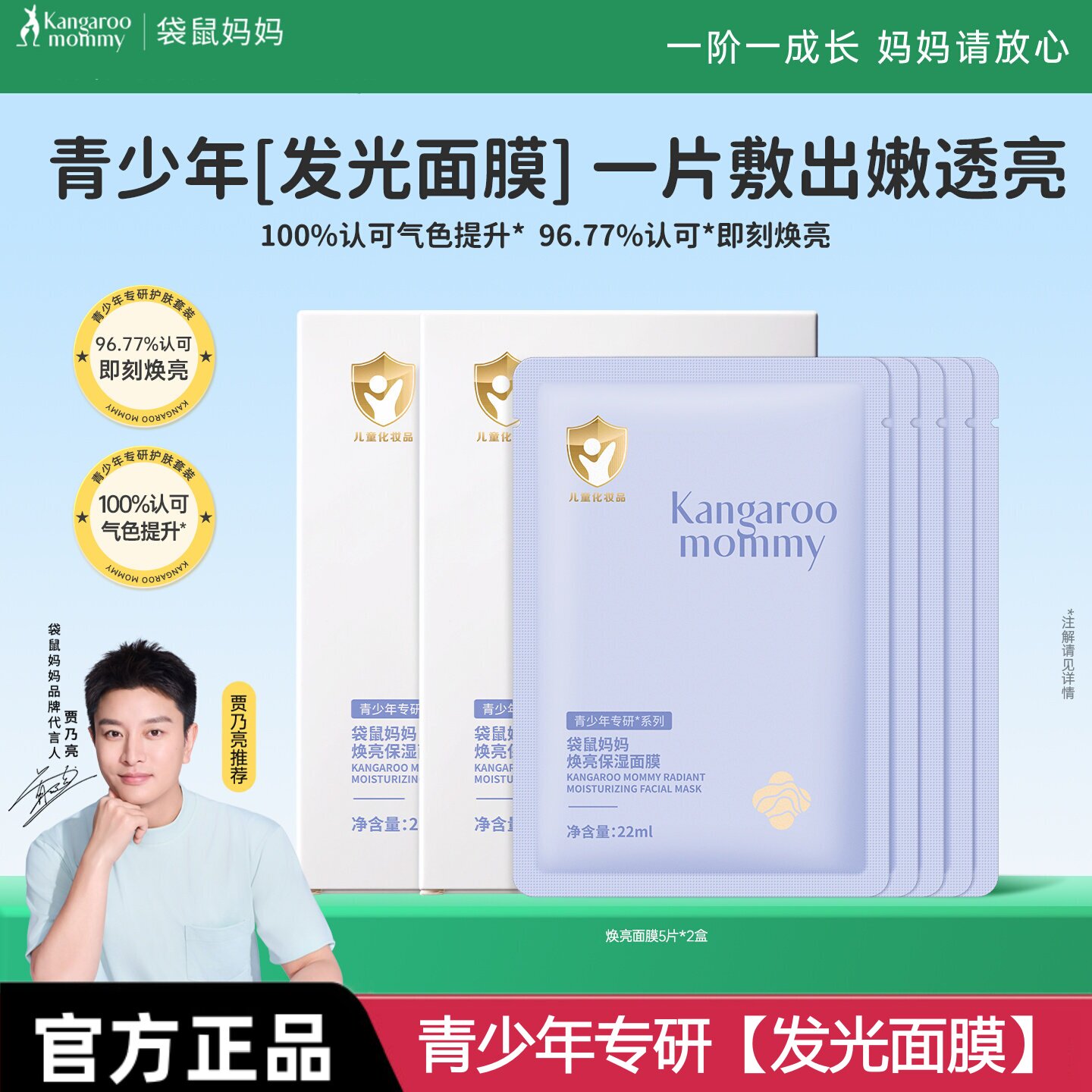 袋鼠妈妈青少年面膜女孩专用男孩补水保湿滋润焕亮面膜学生护肤品