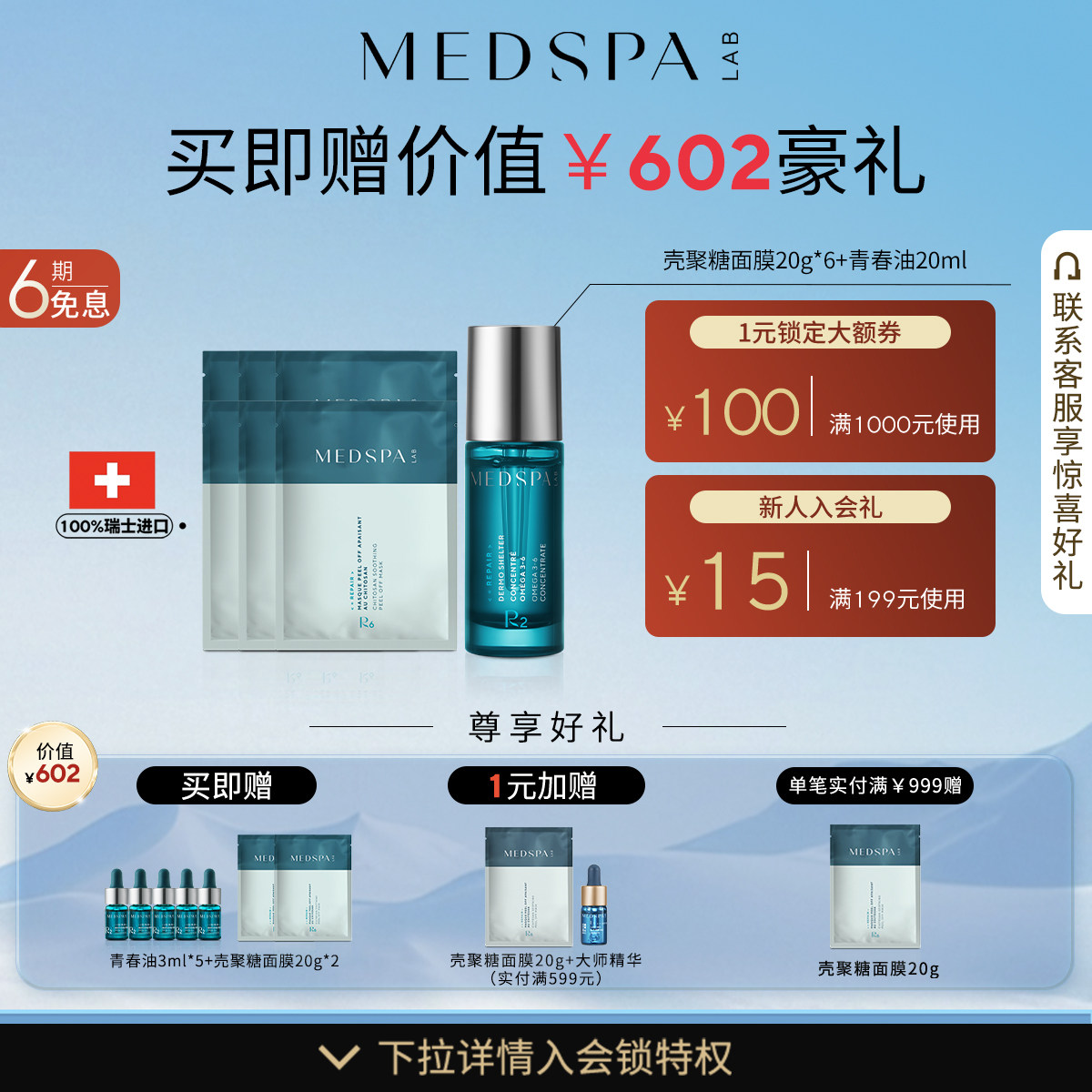 MEDSPA法国美帕青春油20ml壳聚糖6片修护面膜舒缓修护滋润