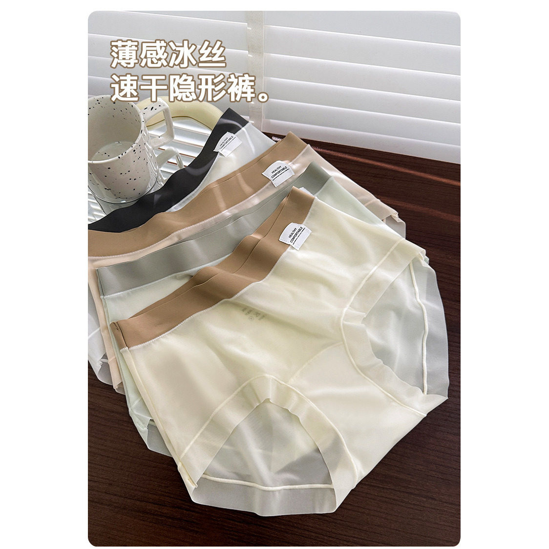 每奈2458冰丝裸感轻薄速干面膜裤无痕女士内裤中高腰性感透明透视