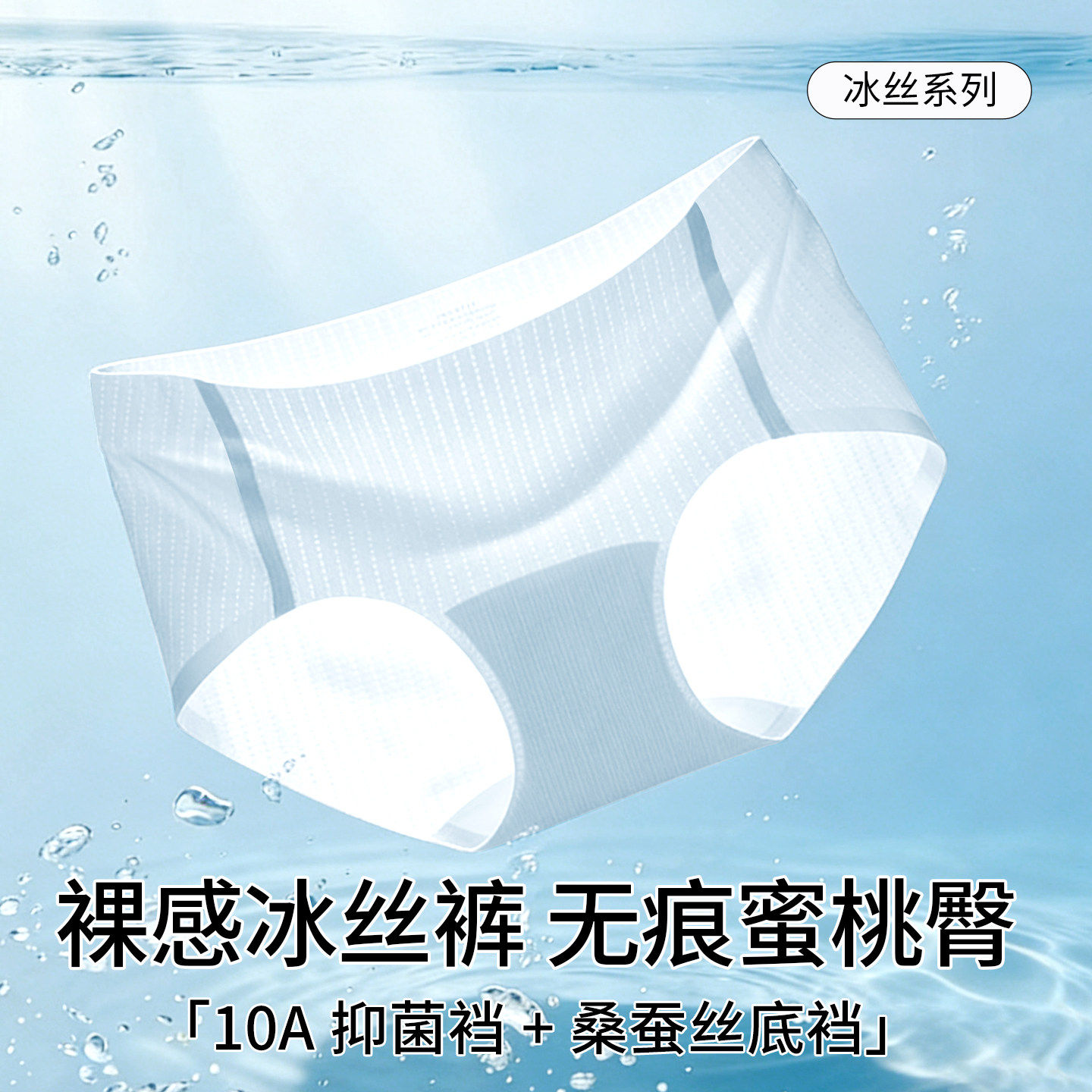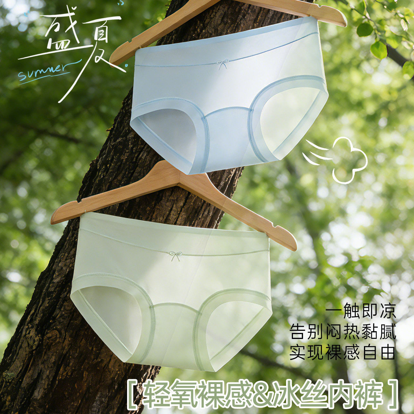 锦瑞轻奢无痕冰丝10A超薄面膜女士内裤桑蚕丝夏季中腰三角裤裸感