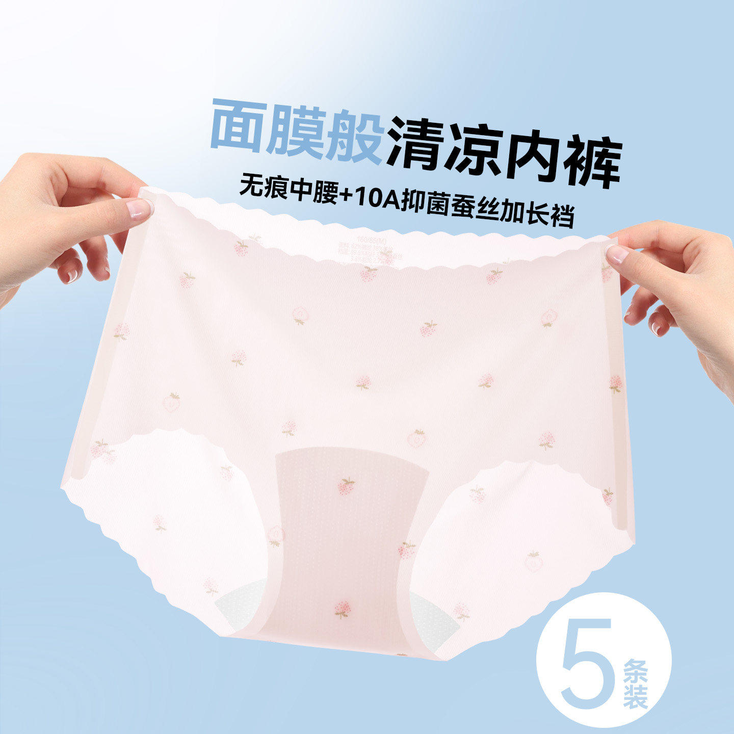 锦瑞轻奢无痕冰丝10A超薄面膜女士内裤桑蚕丝夏季中腰三角裤裸M