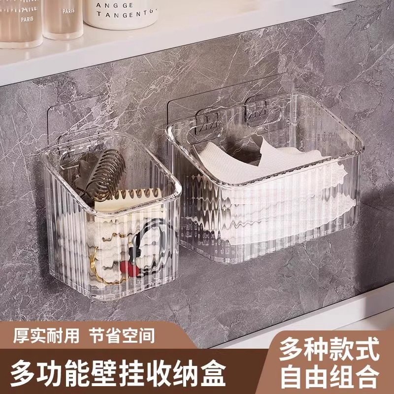 挂壁免打孔家用墙上多层卫生间面膜收纳壁挂篮厨房透明姜蒜日杂