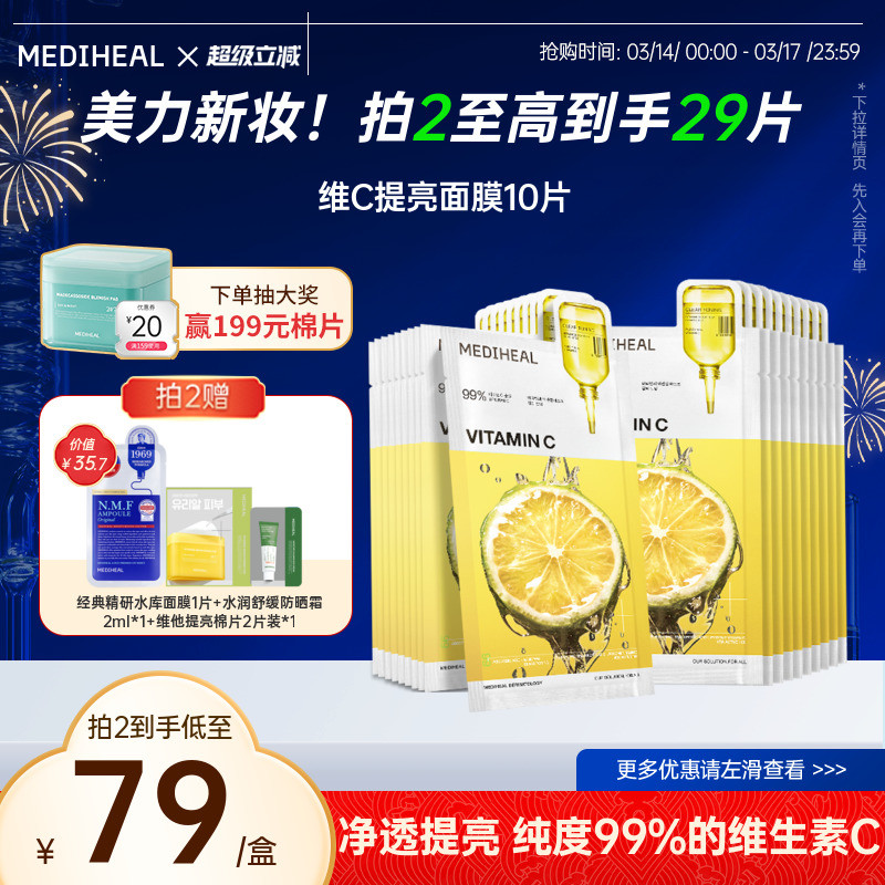【新品3.0升级】美迪惠尔净透焕肤维C提亮面膜10片补水保湿美白