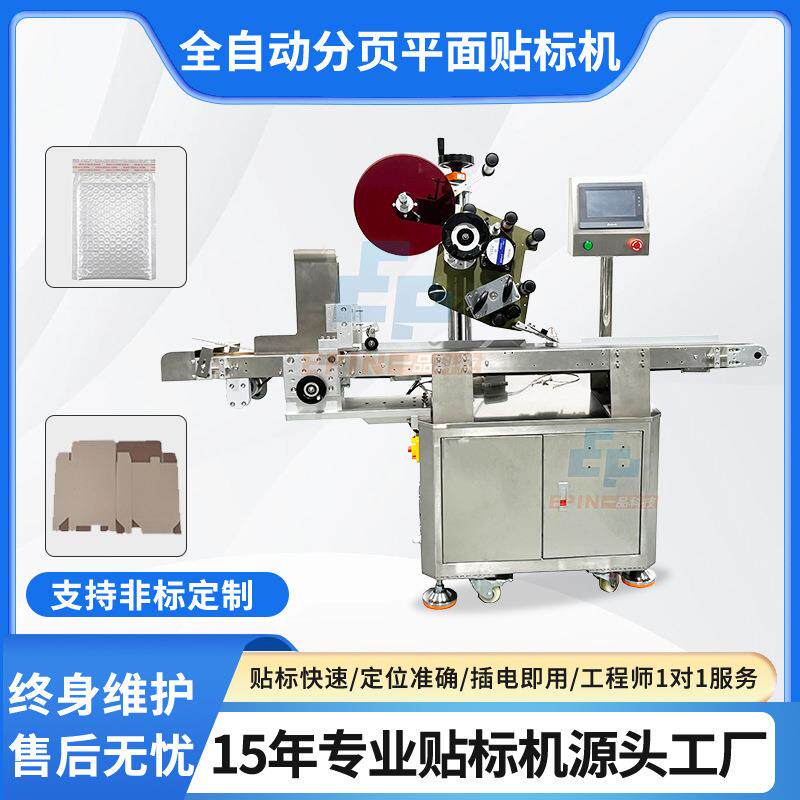 全自动纸箱盒子卡片分页贴标机吊牌PE面膜塑料包装袋平面贴标