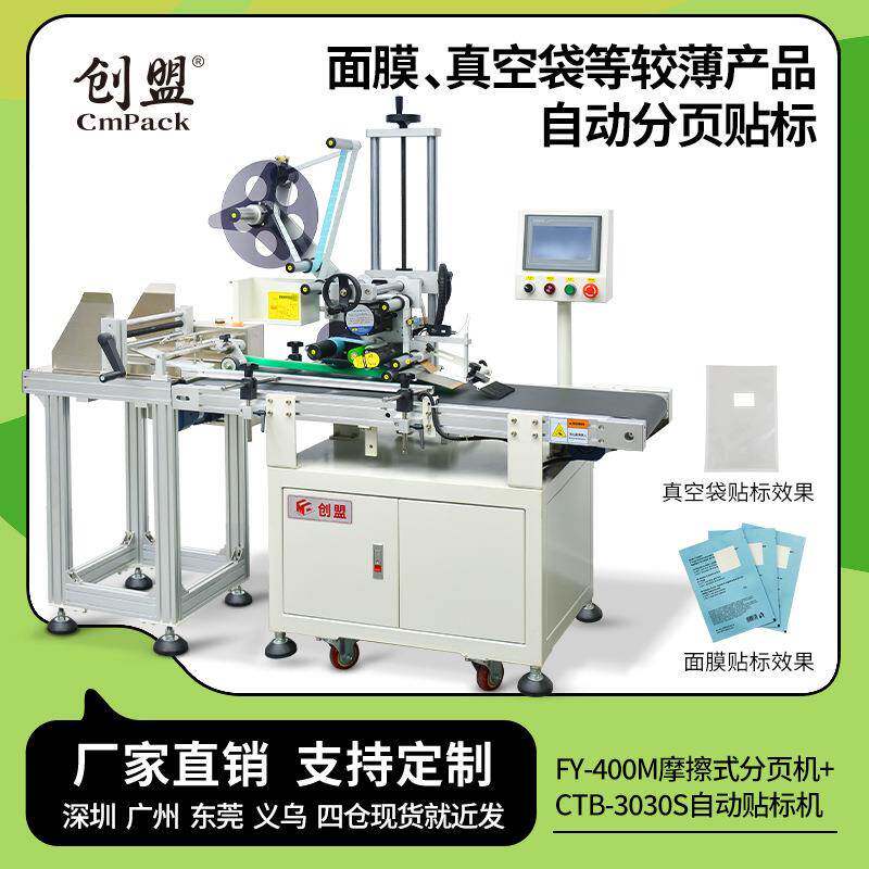 创盟全自动分页贴标机电商纸板气泡袋面膜自动分离摩擦分页贴标机