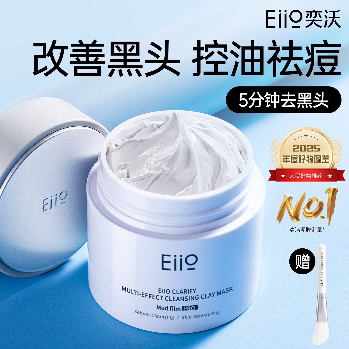 eiio清洁泥膜去黑头白头深层清洁收缩毛孔白泥涂抹面膜奕沃官方