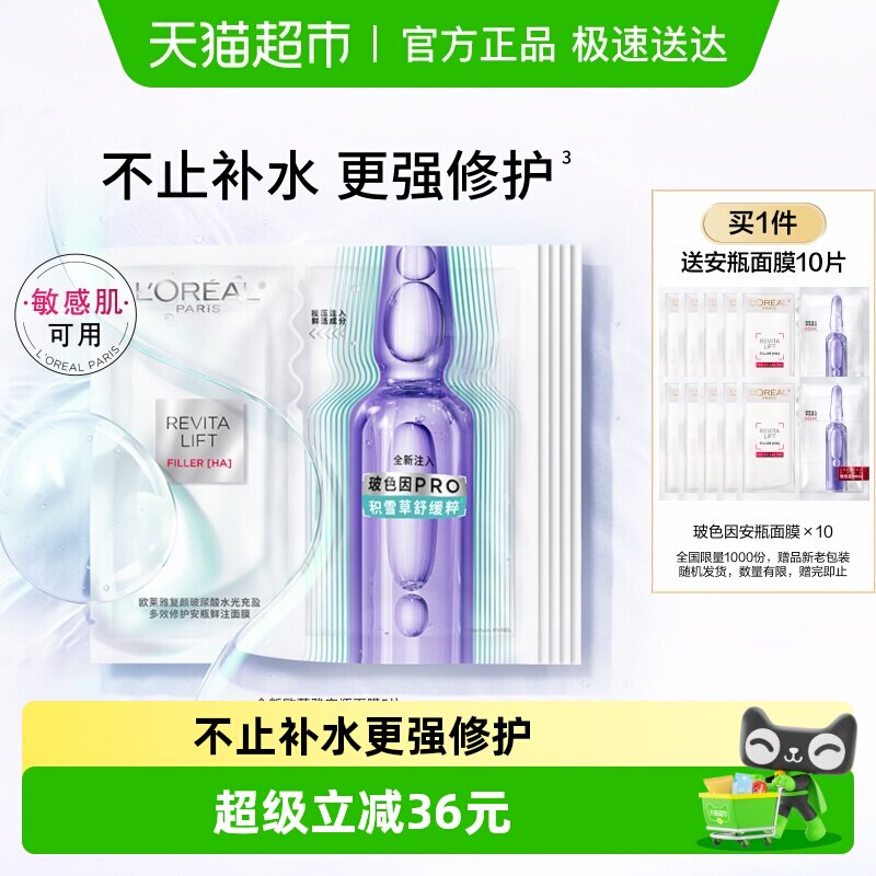 欧莱雅全新复颜玻尿酸安瓶面膜修护紧致保湿舒缓抗皱秋冬季护肤品