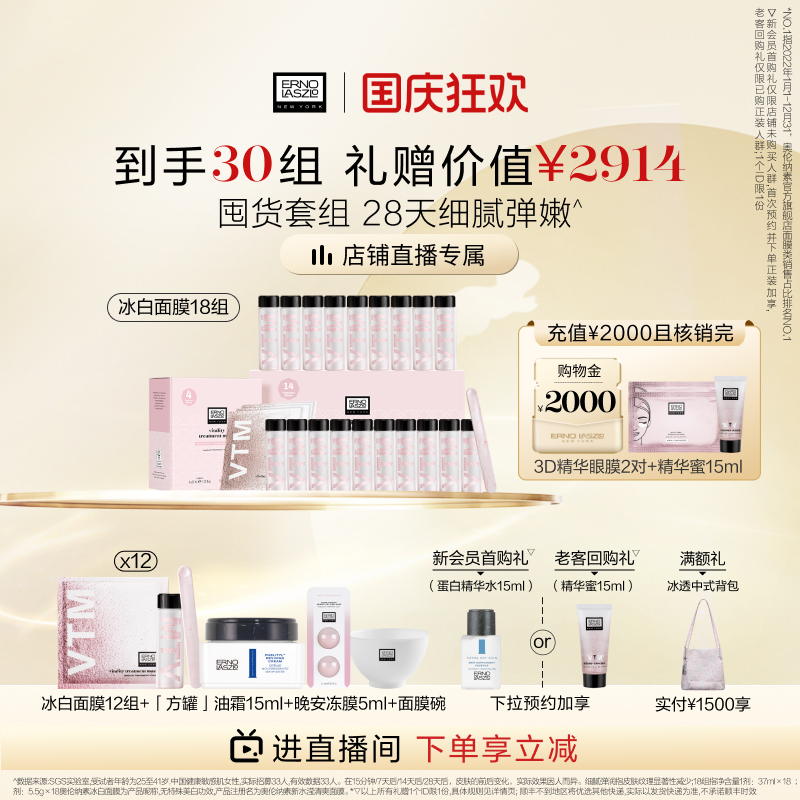 【自播专享】奥伦纳素冰白面膜30组涂抹面膜 修护舒缓保湿