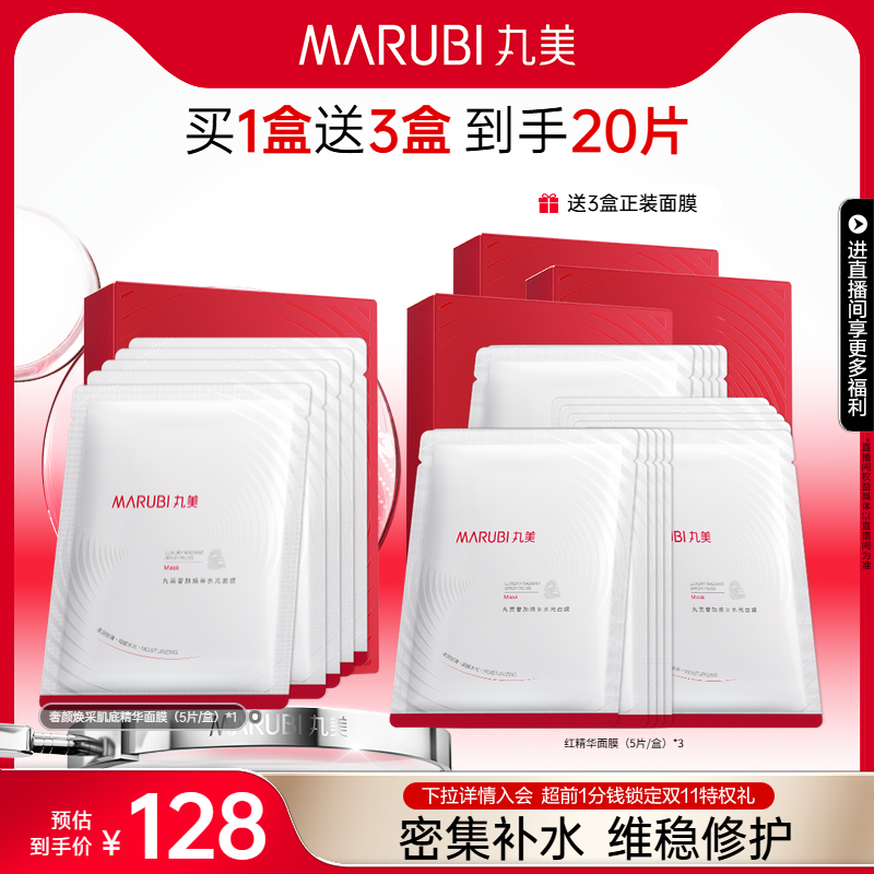 丸美红精华面膜熬夜修护玻尿酸补水保湿抗皱紧致舒缓面贴膜正品