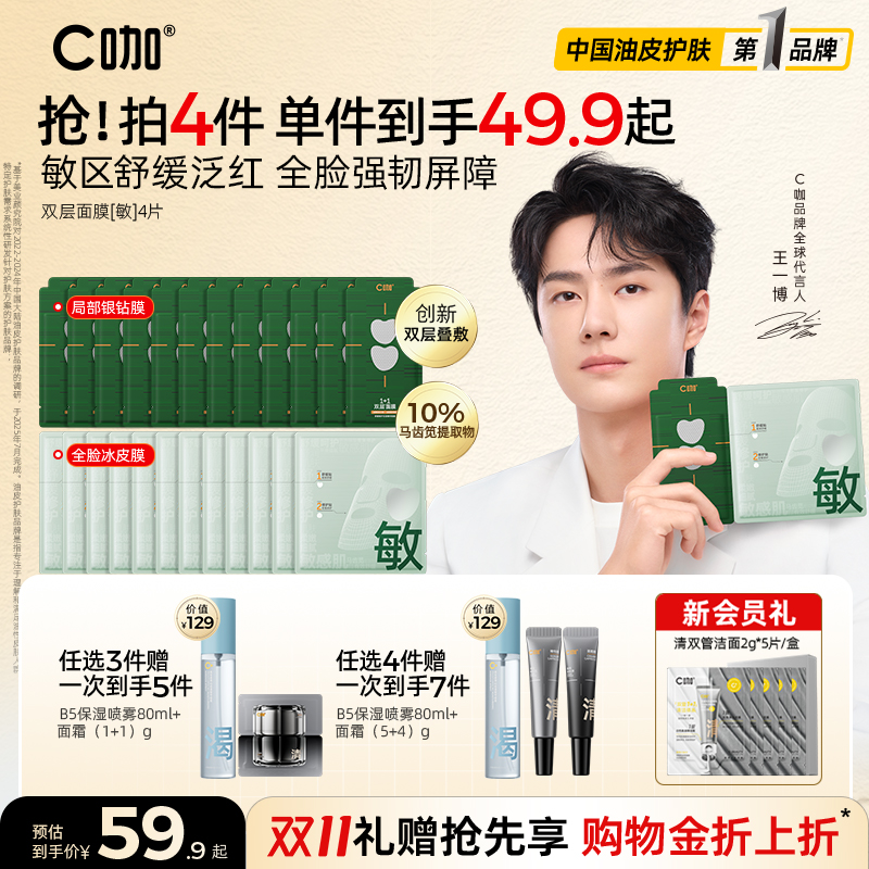 王一博代言】C咖1+1双层面膜补水舒缓泛红修护屏障保湿正品官方