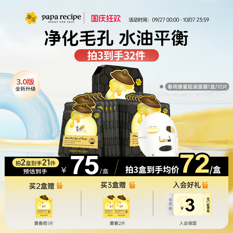 韩国paparecipe蓝春雨蜂蜜提拉面膜3.0紧致补水保湿10片官方正品