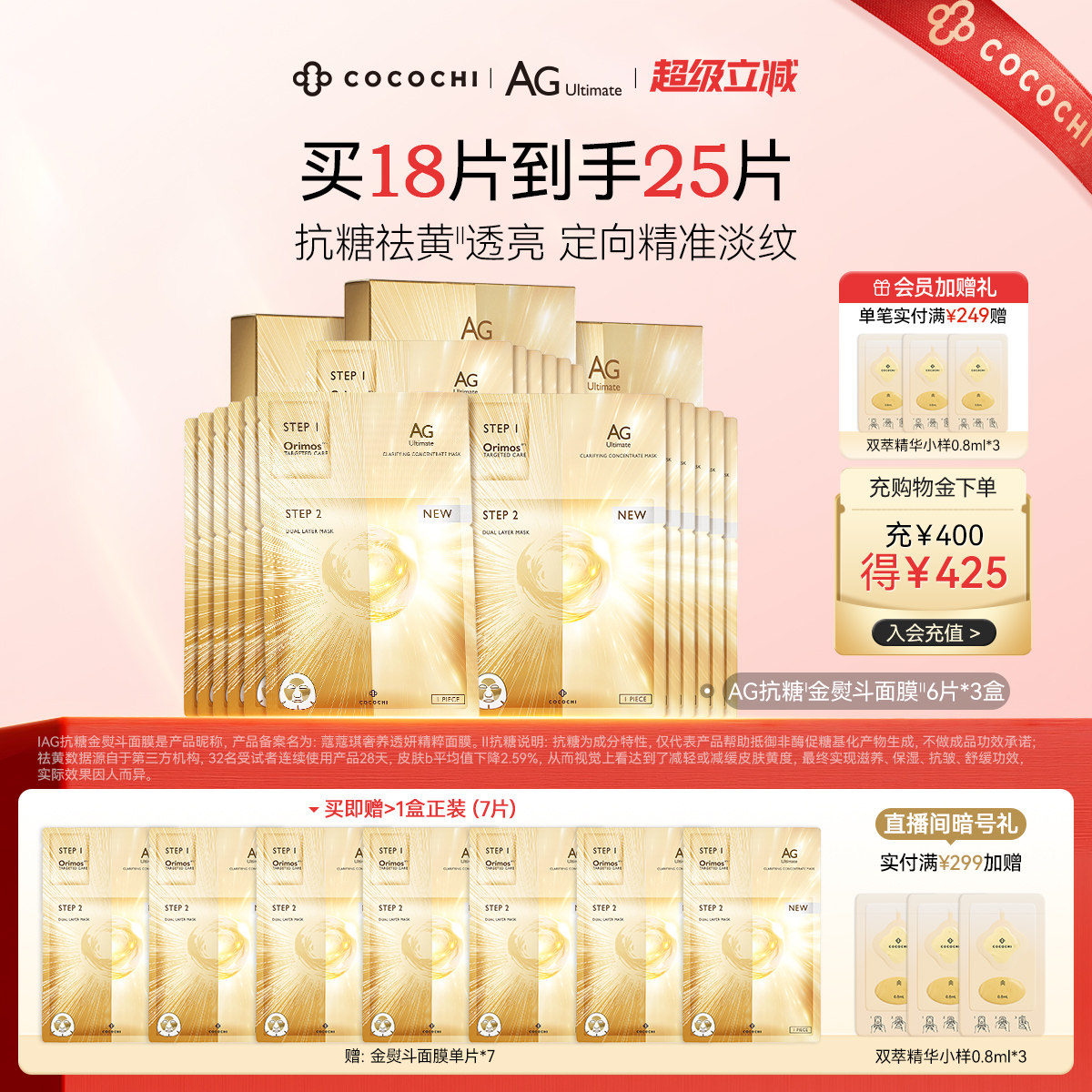 【超级立减】cocochi蔻蔻琪AG金熨斗面膜6片装抗糖修护保湿抗皱