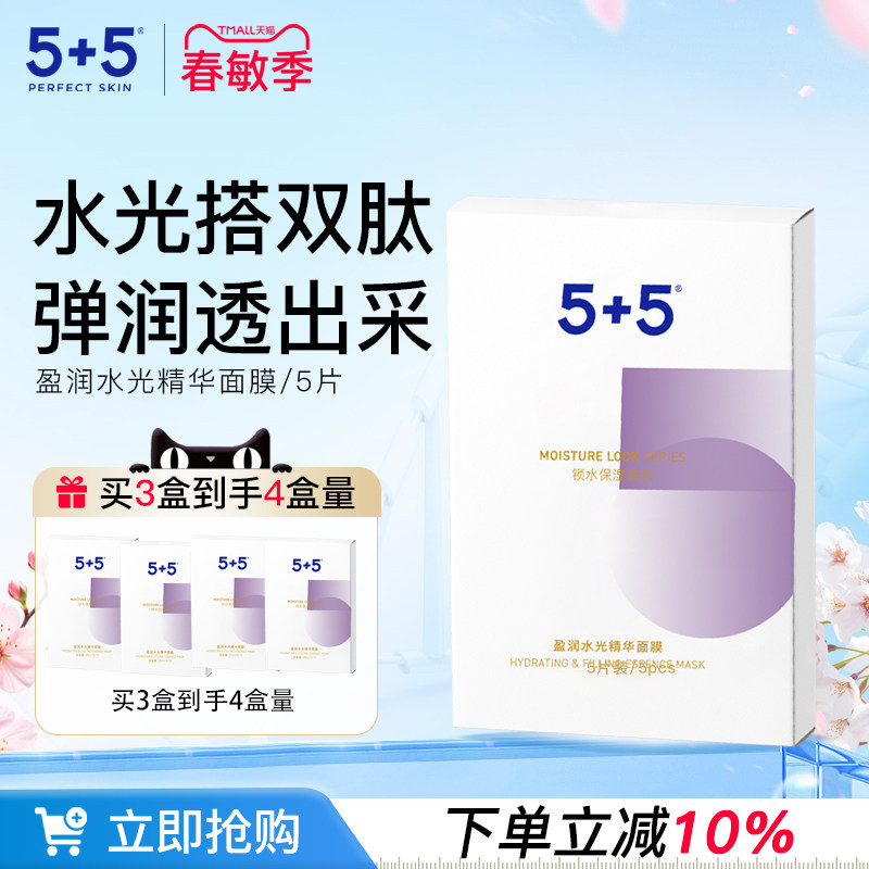 5+5盈润水光精华面膜蓝铜肽蓝膜烟酰胺日常补水亲肤水润泽男女士