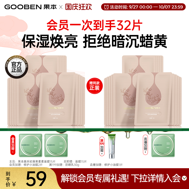 【入会解锁加赠】果本焕采嫩滑果柔柔面膜保湿烟酰胺焕亮补水