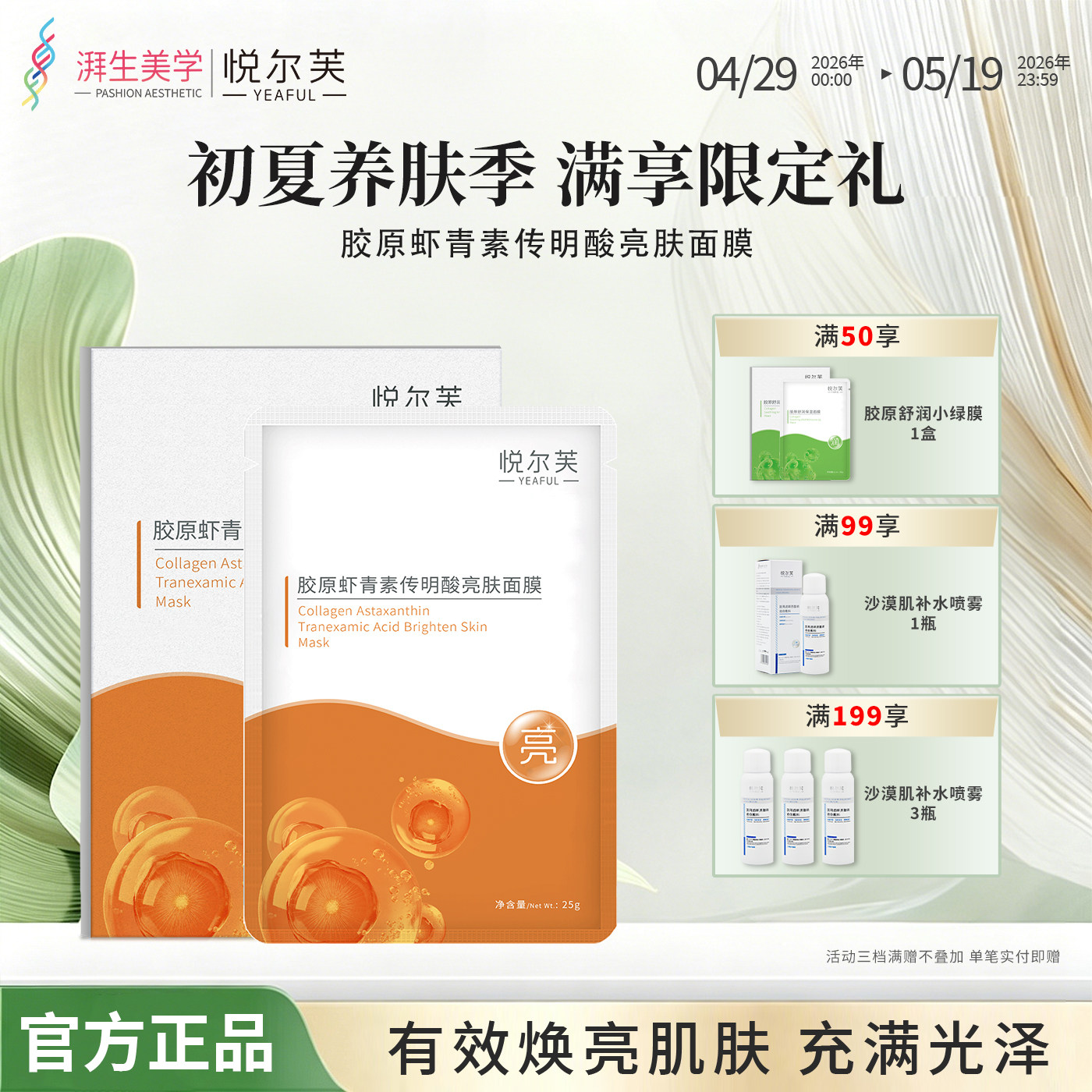 悦尔芙胶原虾青素传明酸亮肤面膜补水保湿亮肤贴水嫩弹润肤橙膜