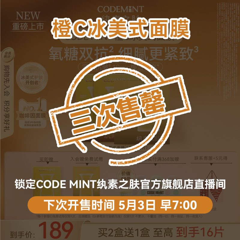 【周扬青同款】CODEMINT纨素之肤橙C冰美式面膜紧致双抗氧