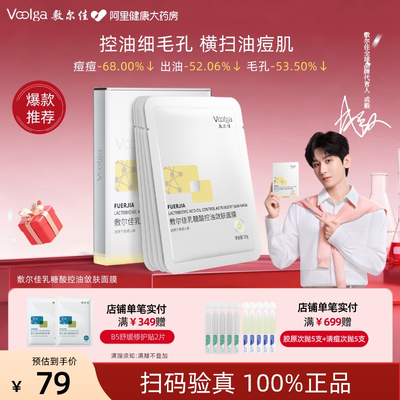 敷尔佳面膜乳糖酸控油敛肤贴片收缩毛孔补水保湿祛痘正品油痘肌