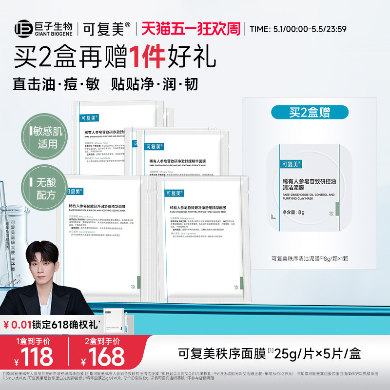 【王子奇同款】可复美秩序面膜净澈舒缓控油补水精华面膜5片/盒