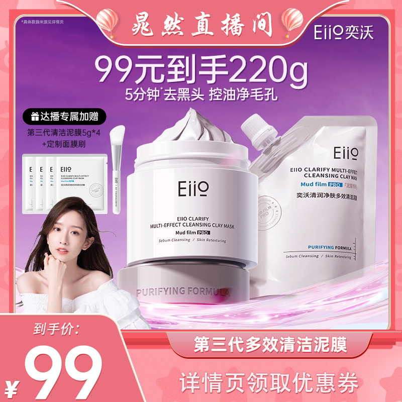 【林依轮直播间】eiio清洁泥膜去黑白头深层清洁毛孔白泥涂抹面膜