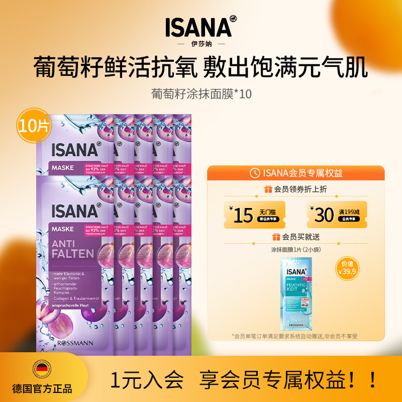 ISANA伊莎妠葡萄籽涂抹面膜保湿滋润提亮紧致肌肤男女水洗 10片