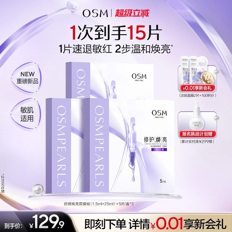 欧诗漫安心双仓小白膜面膜温和焕亮修护补水退红无刺激敏感肌专用
