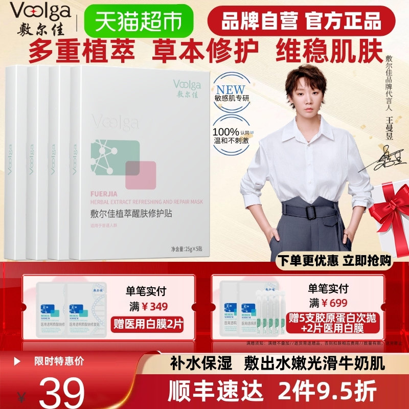 【品牌自营】敷尔佳植萃醒肤修护面膜贴补水保湿光滑滋润面部5片