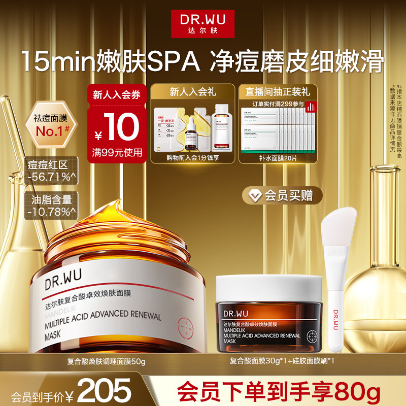 DR.WU达尔肤复合酸面膜祛痘去粉刺水杨酸控油涂抹果酸去黑头冻膜