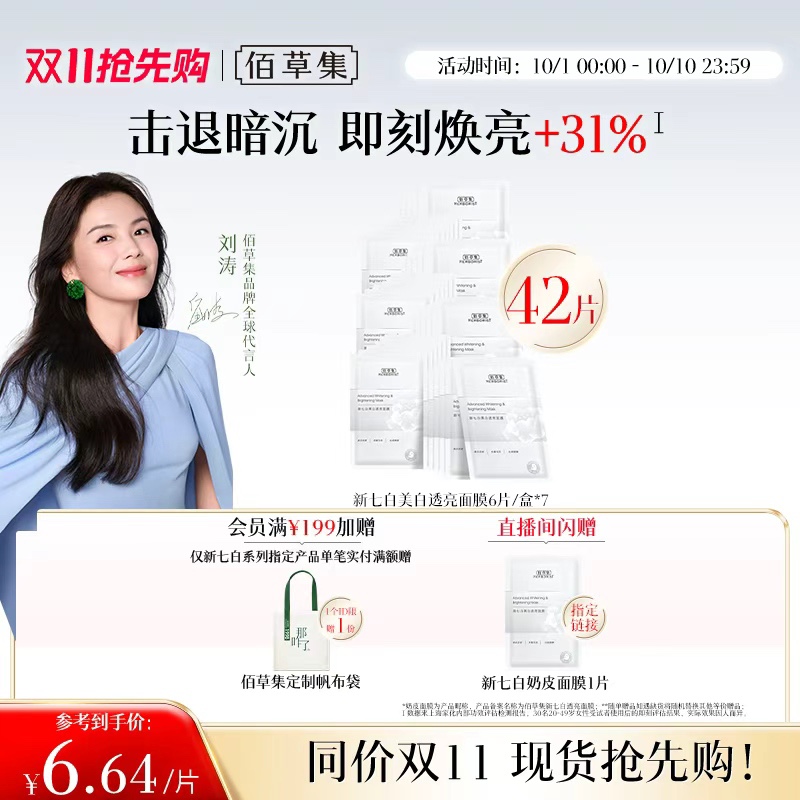 【刘涛同款】特证2.0佰草集新七白奶皮补水面膜美白面膜祛斑减黄