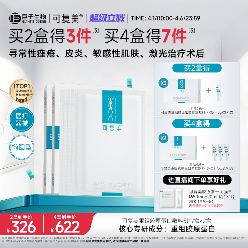 可复美重组胶原蛋白敷料创面敏感性肌肤医用冷敷贴面膜形态2盒装