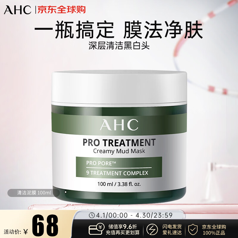 AHC清洁泥膜 涂抹式面膜收缩毛孔 改善黑头控油舒缓100ml 生日礼物