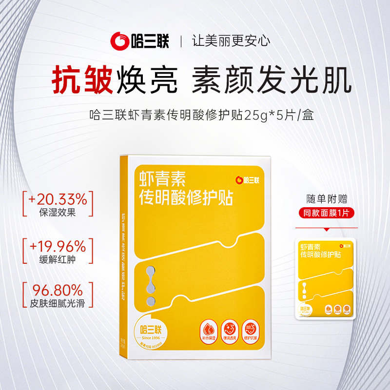哈三联虾青素传明酸修护贴面膜补水保湿弹润透亮抗皱紧致改善暗沉