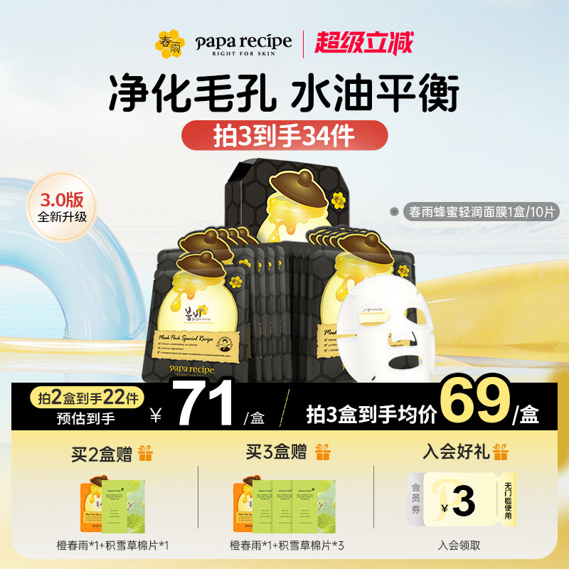 韩国原装春雨蜂蜜面膜深层净化毛孔黑10片补水控油官方旗舰店正品