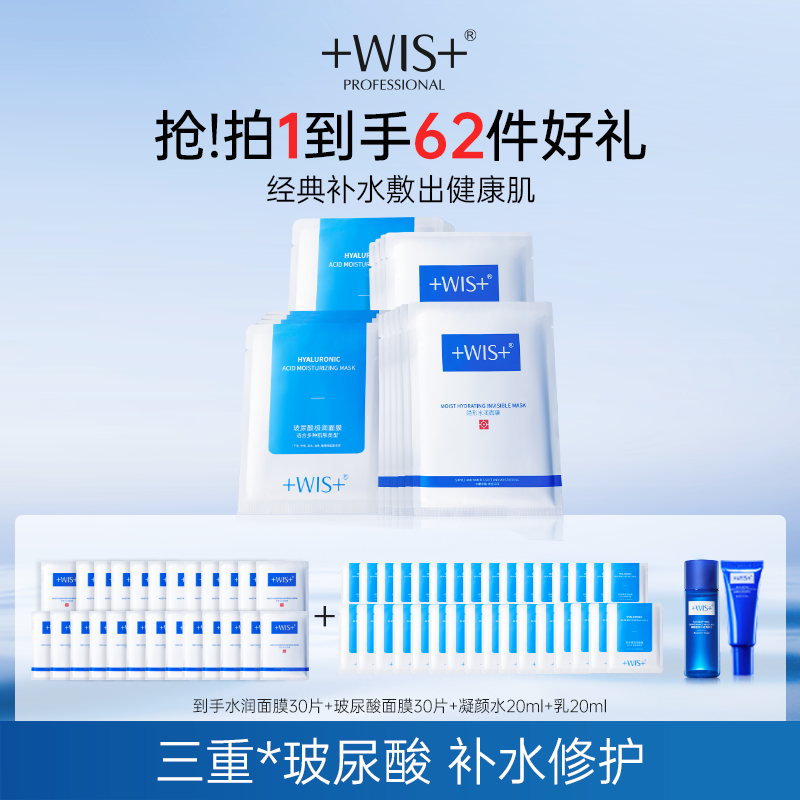 【官方正品】WIS水润玻尿酸面膜组合 舒缓修护补水保湿女 护肤品