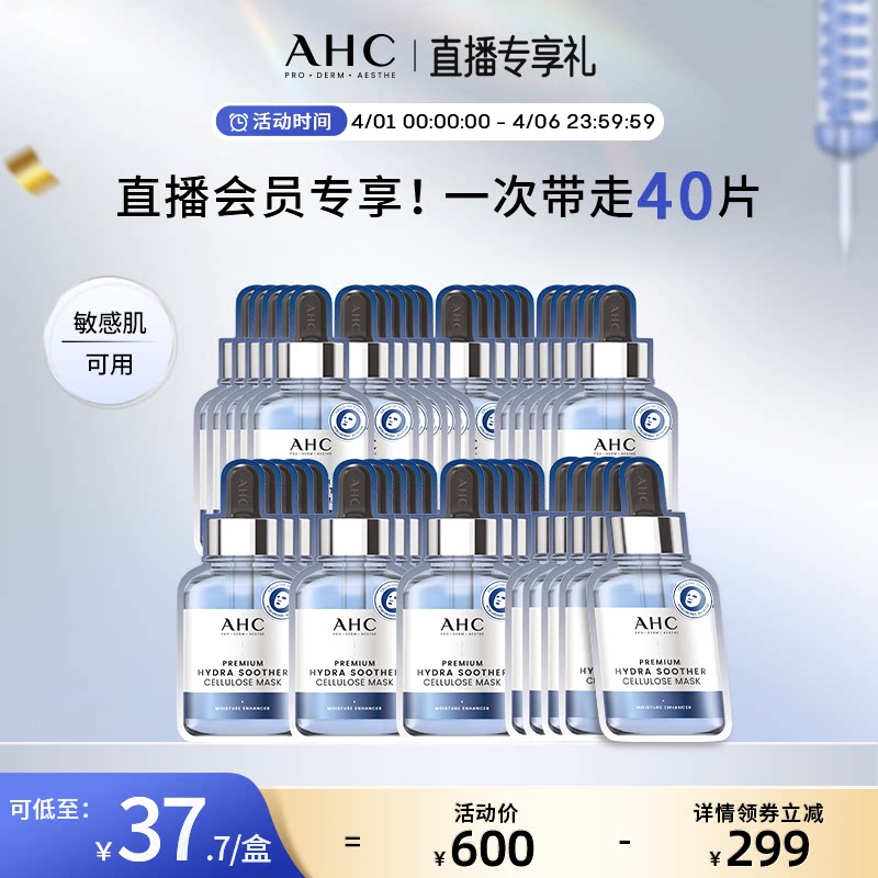 【直播会员专享40片】AHC官方第三代B5玻尿酸面膜8盒补水保湿舒缓