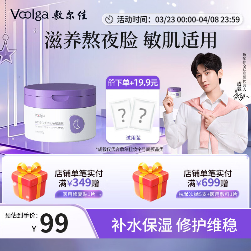 敷尔佳【熬夜系列】依克多因睡眠面膜 滋养修护熬夜肌肤 补水保湿舒缓敏 单盒(100g大含量)