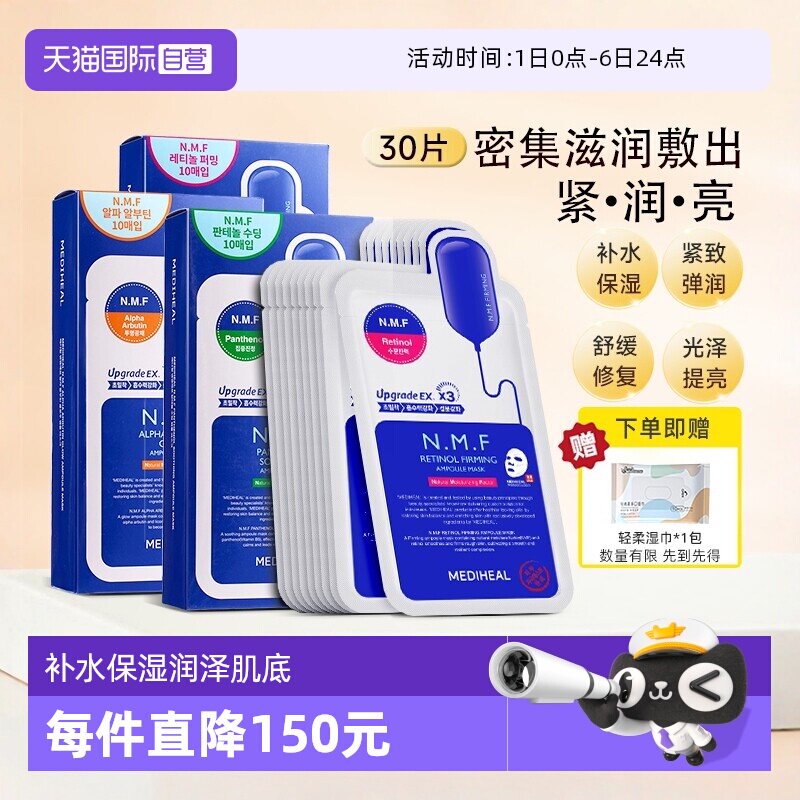 【自营】MEDIHEAL/美迪惠尔补水保湿面膜女锁水秋冬嫩白3盒装进口