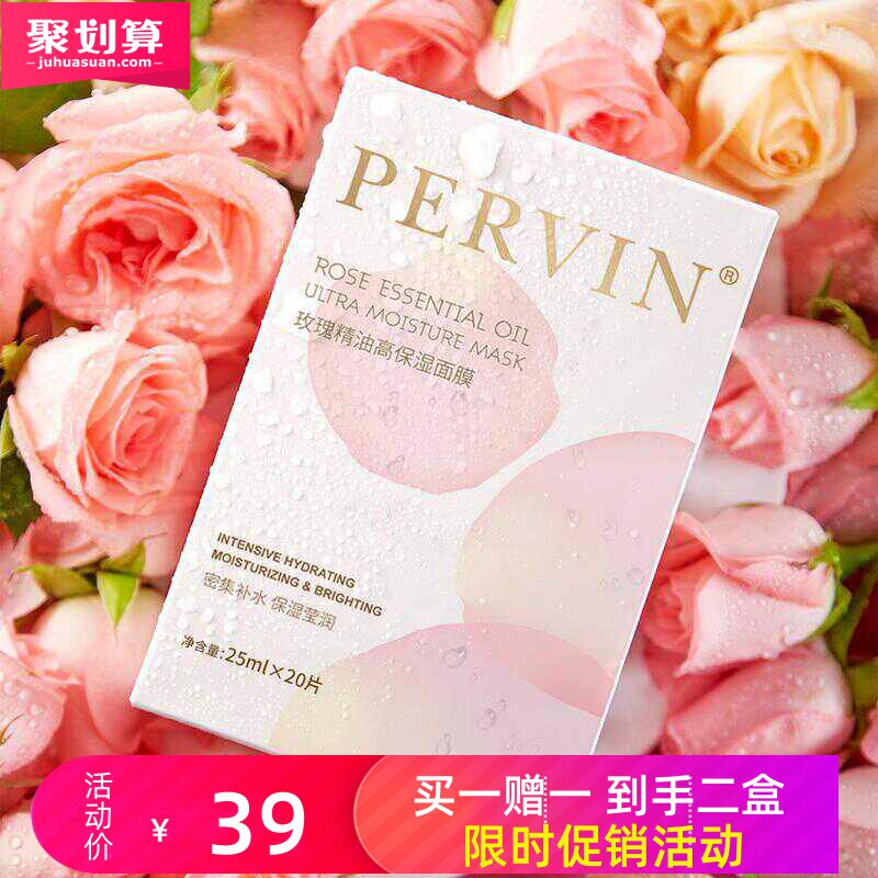 PERVIN玫瑰精油高保湿面膜密集补水嘭嘭水润舒缓肌肤改善粗糙20片