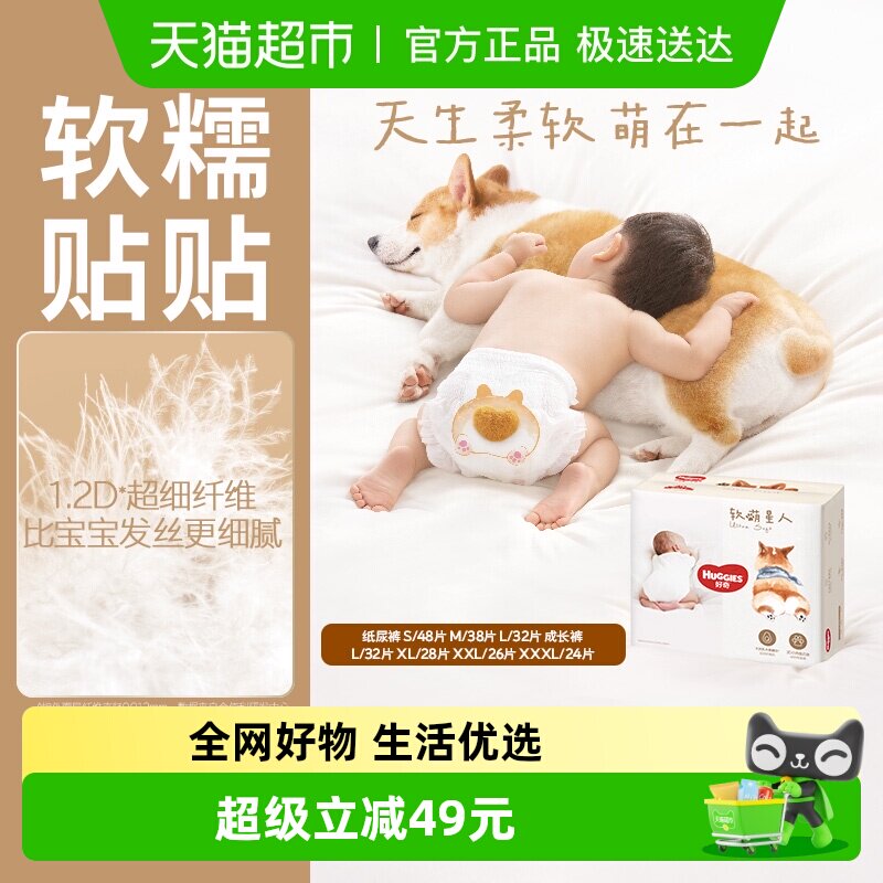 好奇软萌星人纸尿裤S48/M38/L32成长裤L32/XL28/XXL26/XXXL24