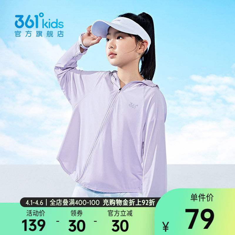 361童装女童冰肤防晒衣UPF50+连帽夏季2026女童运动轻薄透气外套