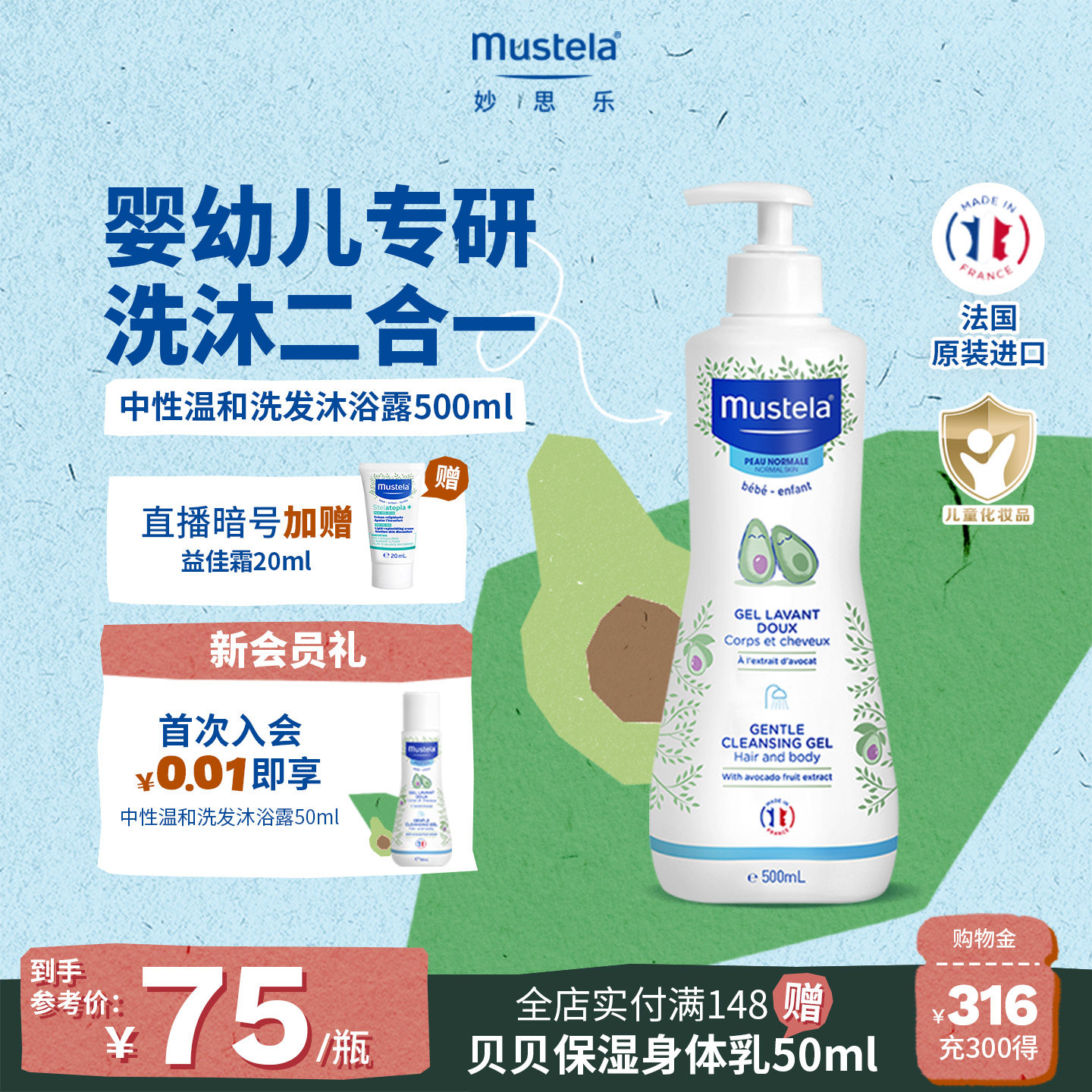 妙思乐婴幼儿沐浴露洗发水二合一儿童新生宝宝温和换季补水正品
