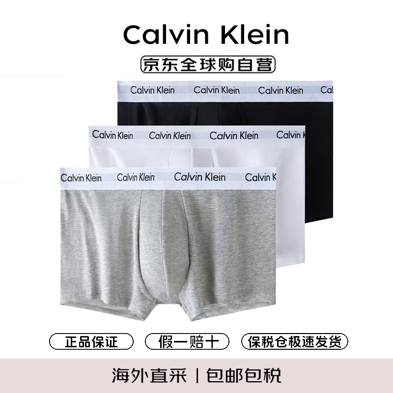 Calvin KleinCK 男士平角内裤套装套盒 3条装 送男友礼物 U2664G 998黑白灰 M