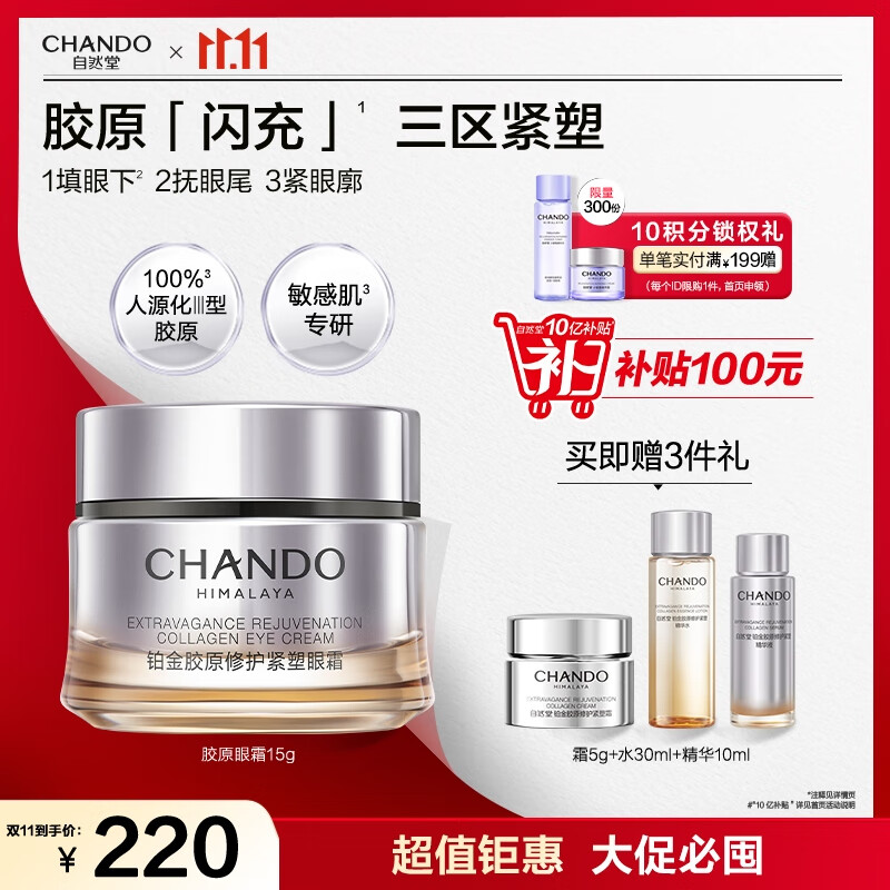 自然堂铂金胶原修护紧塑眼霜 舒缓抗皱紧致保湿 铂金胶原眼霜15g