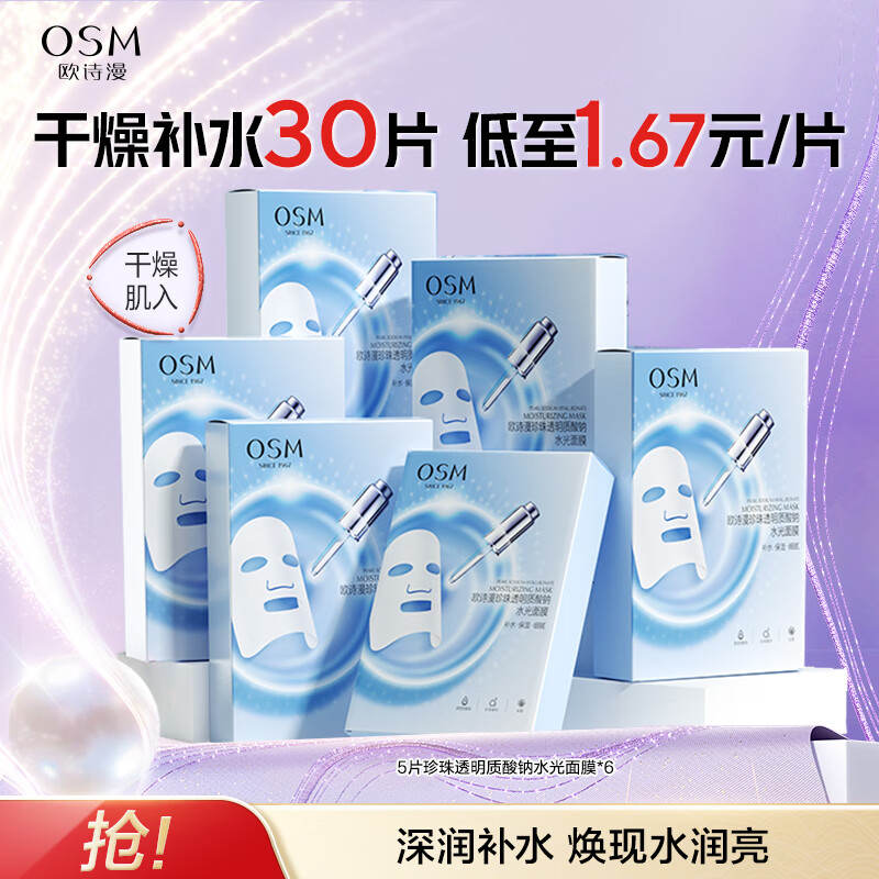 欧诗漫(OSM)珍珠透明质酸钠水光补水面膜保湿滋润贴片面膜【专享】 水光面膜30片