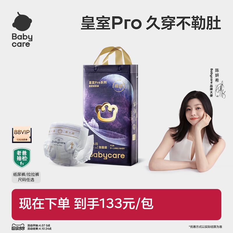 babycare皇室pro裸感纸尿裤拉拉裤超薄透气婴儿宝宝加量装