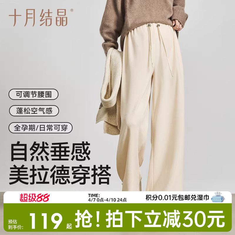 十月结晶孕妇裤春季小个子垂感阔腿裤松紧腰部妈妈外穿宽松长裤女