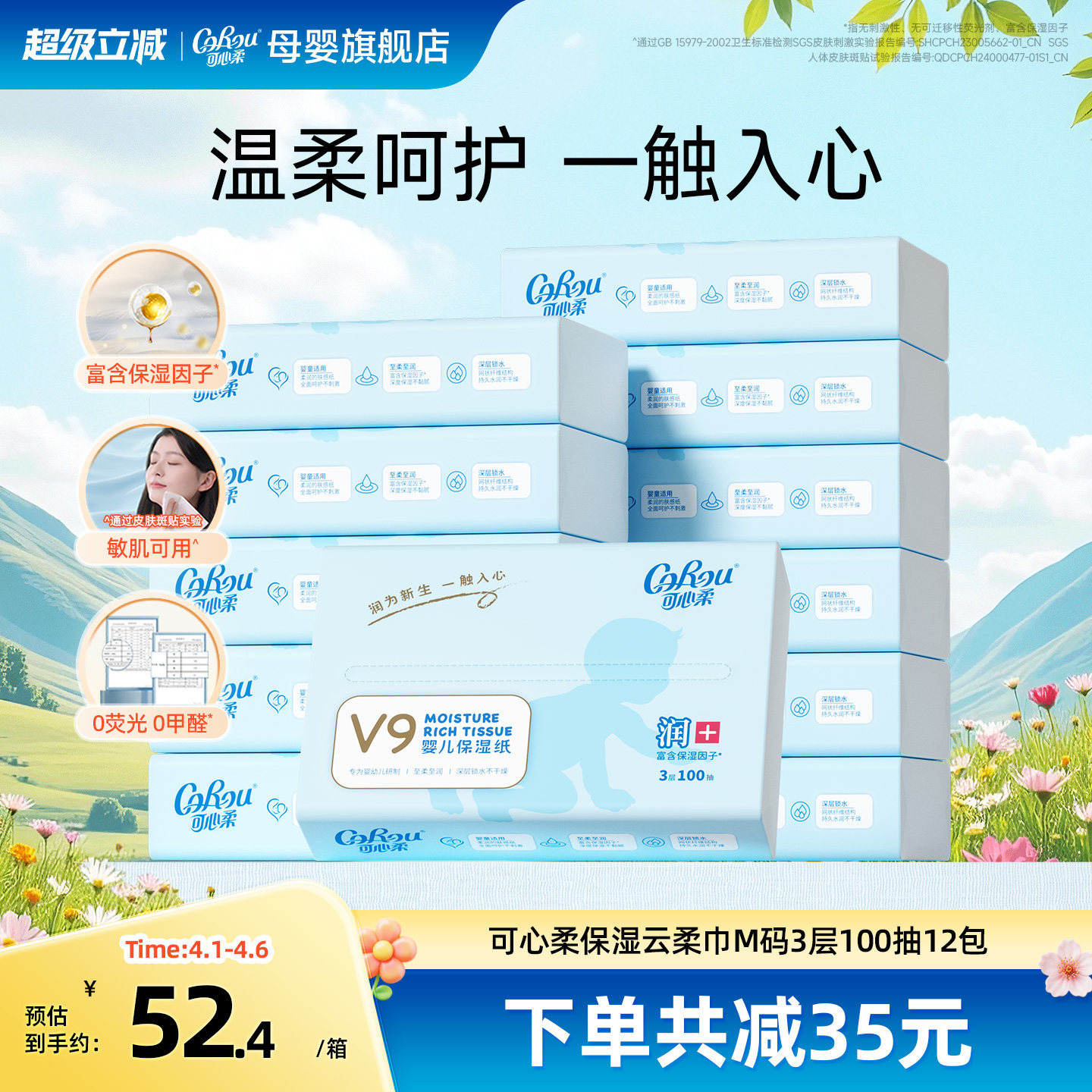 买1送1可心柔婴儿纸巾宝宝超柔云柔纸巾乳霜纸100抽12包 共发24包