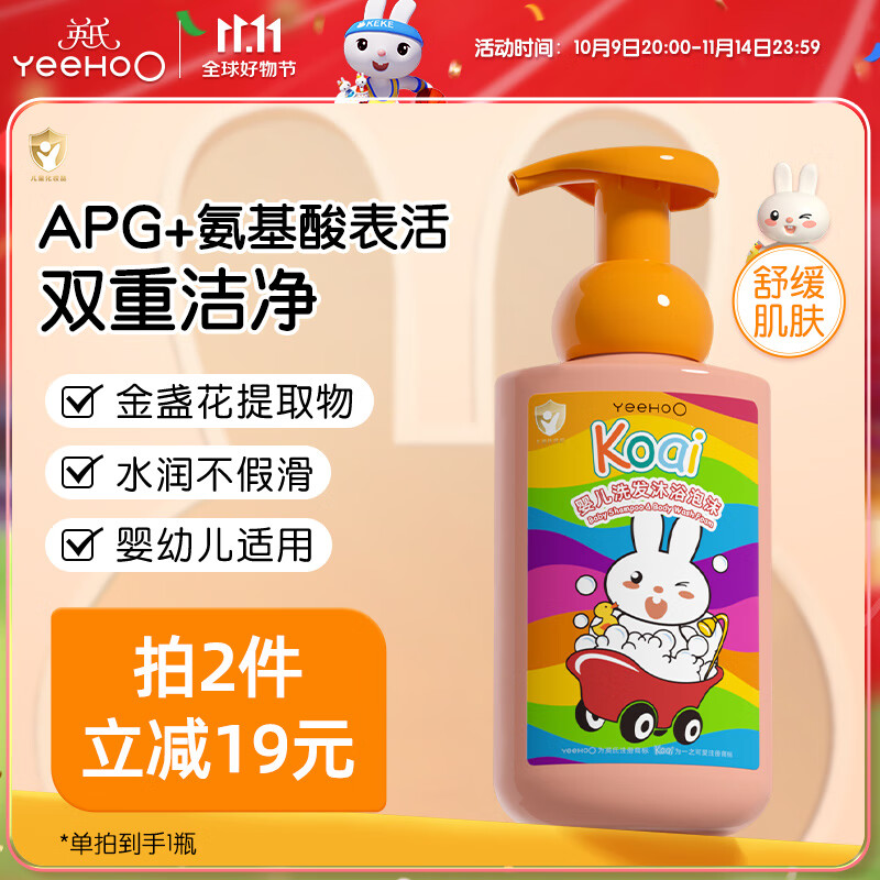 英氏儿童沐浴露洗发水二合一婴儿宝宝洗发沐浴露氨基酸温和无刺激 金盏花二合一450ml