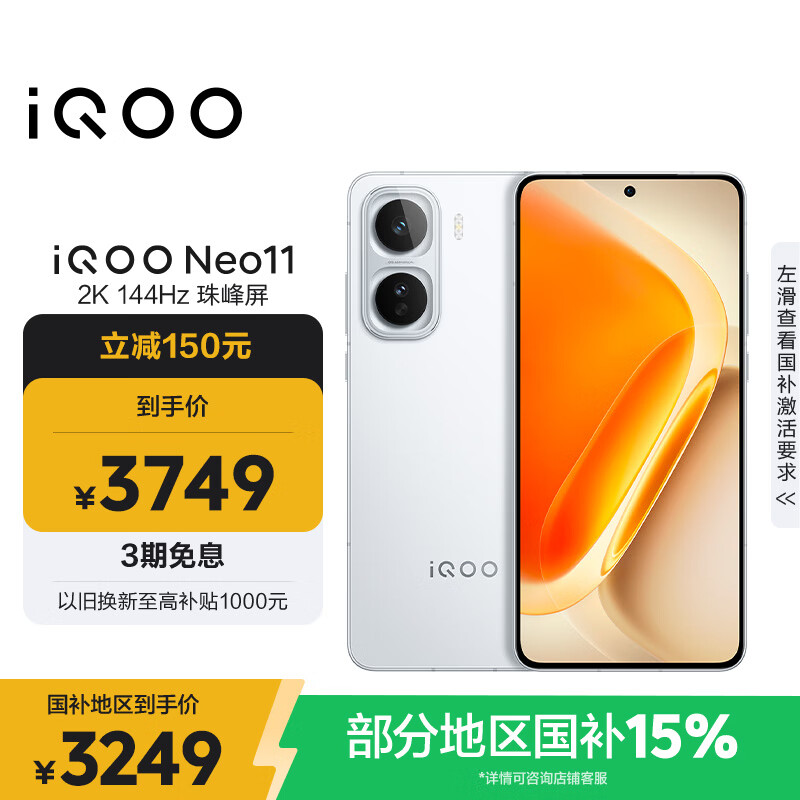 vivo iQOO Neo11 16GB+512GB 驰光白2K 144Hz珠峰屏 骁龙8至尊版 国家补贴iqooneo11学生游戏电竞手机