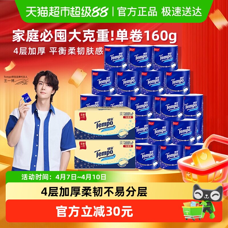 【下拉享优惠】得宝卷纸无香有芯压花4层厕纸卫生纸160g*32卷