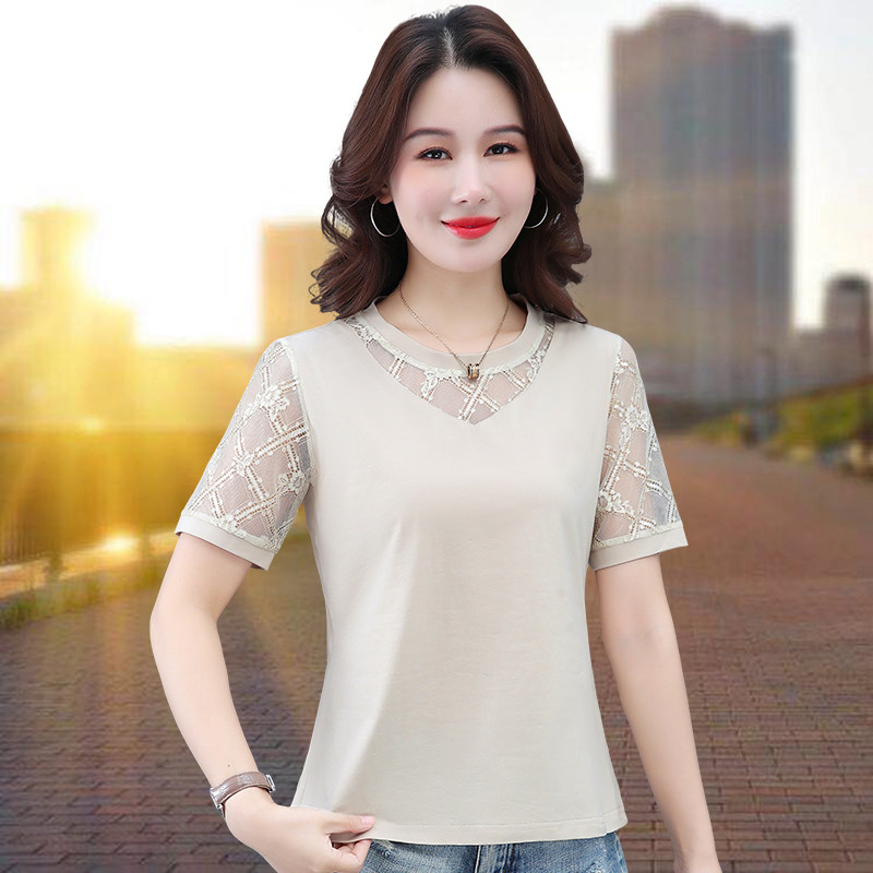 纯棉短袖t恤女 新款2025夏装减龄半袖小衫中老年妈妈宽松显瘦上衣